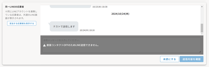LINE_DeveloperやLINEアプリから応募者に送信したメッセージが、LINEタブに表示されない
