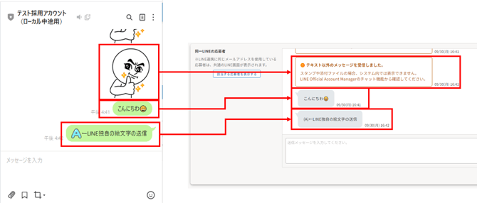 LINE_DeveloperやLINEアプリから応募者に送信したメッセージがLINEタブに表示されない