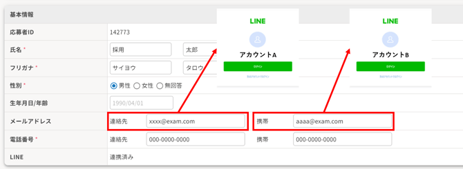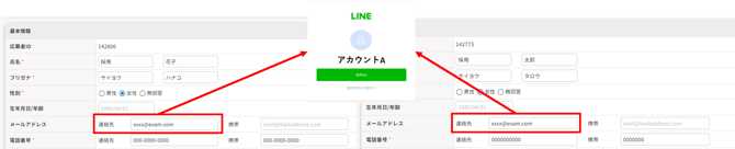1人の応募者に対して複数のLINEアカウントと連携できるか