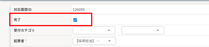 対応履歴IDをクリックして、問合せ登録画面を開き「完了」にチェックを入れて〔上記の内容で登録〕をクリックするとホーム画面でカウントされなくなります。
