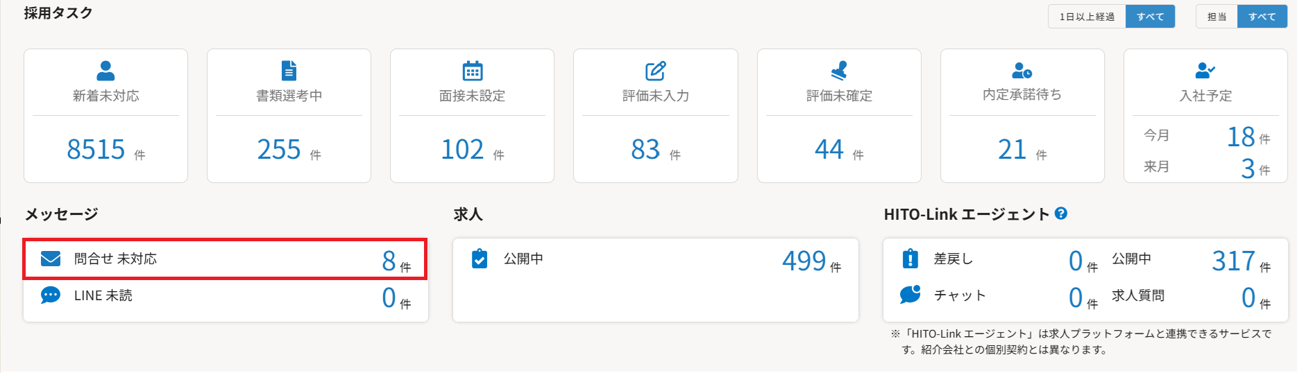 A.ホーム画面の件数には迷惑メールもカウントされますが、問合せ一覧のデフォルト表示では迷惑メールは表示されないため件数に差が出る場合があります