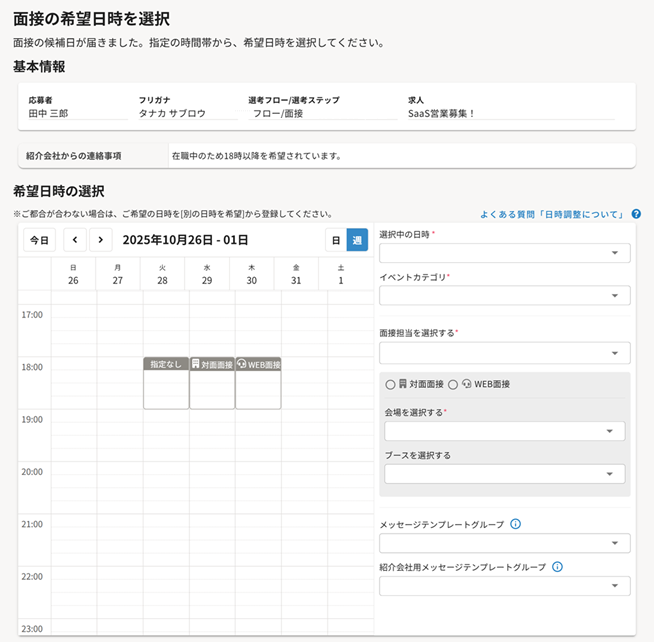 候補日を受け取り希望日程を選択したら、面接調整が完了します。