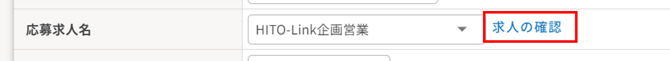 応募管理>応募求人名 の横にある〔求人の確認〕をクリックすると、応募者に設定されている求人の詳細画面に遷移します。