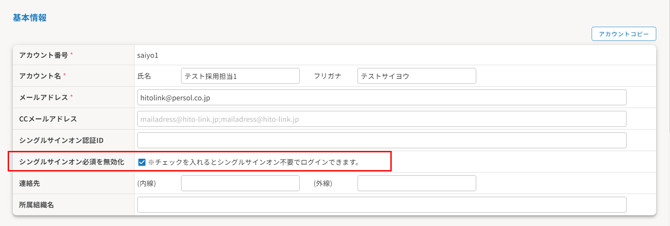 | シングルサインオン必須を無効化 |