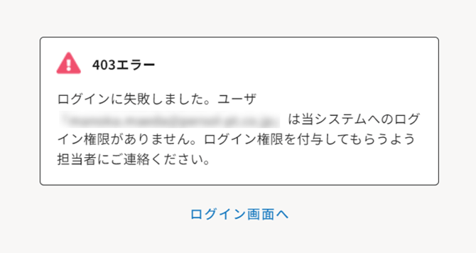 ログイン不可にチェックを付けて更新し、アカウントを無効化してください。 - ログイン不可フラグを付けられた人がログインを試すと以下の表示になります。