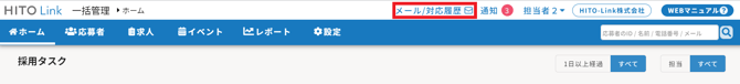 応募者からの受信メールを確認したり、問合せ履歴やTODOの登録・管理ができます。