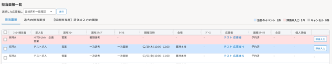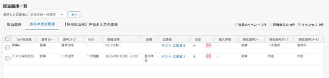 自身の過去の担当面接が表示されます。担当した応募者の現在の選考状況を確認できます。