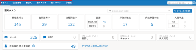 ※絞り込みの範囲は選考タスクのみとなります。メール/LINE/チャット/求人質問/差戻し求人/自動取込求人未設定については絞り込みの対象外となります。