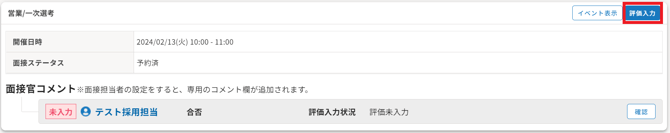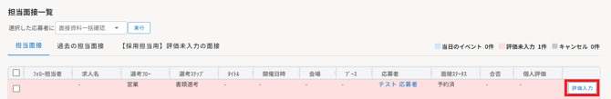 2.面接の「評価入力」をクリックすると評価入力ができます。