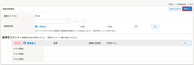 面接官の評価入力状況が「評価未入力」「評価入力中」でも
