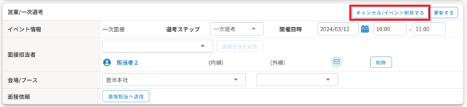開催日以降は、評価入力画面で面接ステータスを「キャンセル」として登録して下さい。