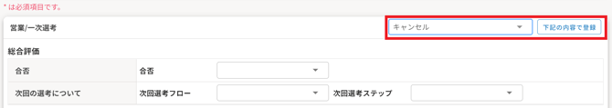 選考結果を選択し、改めて登録してください。