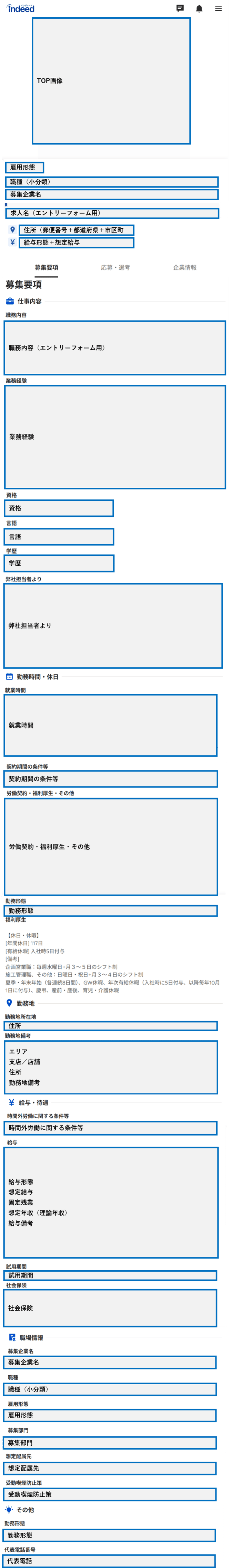 職務内容(エントリーフォーム用) エントリーフォーム/Indeedへ公開する職務内容を入力します