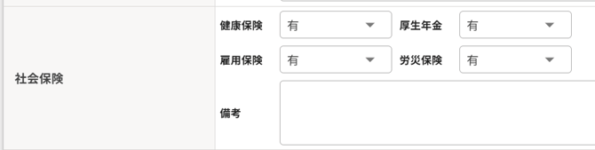 雇用形態で「正社員」「契約社員」「派遣社員」「アルバイト・パート」を選択する場合は、選択する募集企業の社会保険欄4つの項目がすべて「有」の必要があります。