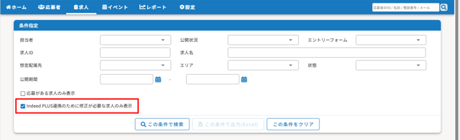 ※「設定>サービス連携>Indeed PLUS連携ONの場合」のみ表示されます。