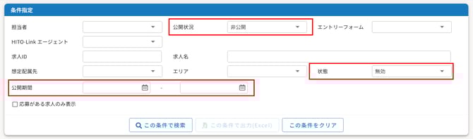 上記設定をしても、メインメニュー>求人>求人一覧 で検索が可能です。