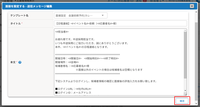 応募者や紹介会社宛てに日程確定メールを送信するダイアログが表示されます。