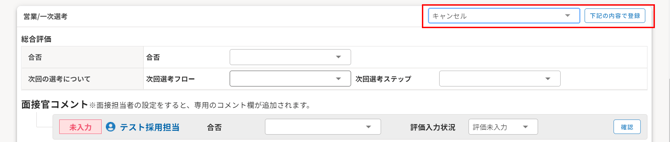 | 面接官権限のアカウントで総合評価を登録したい場合は、チェックをいれてください。(面接担当者が1名の場合:必ずチェックを入れるようにしてください) | |