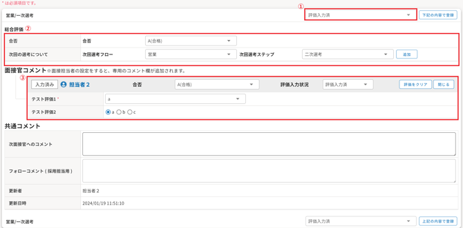 ③他面接官の評価入力欄