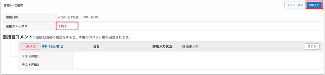 面接官の評価入力状況が「評価未入力」「評価入力中」でも