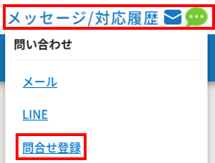 1.画面右上の〔メッセージ/対応履歴〕>〔問合せ登録〕をクリックします。