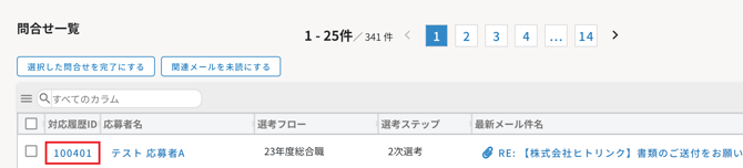 ※紐づくメールのうち一部を未読に戻したい場合は、応募者情報画面の「メール送受信履歴」タブで未読にしてください