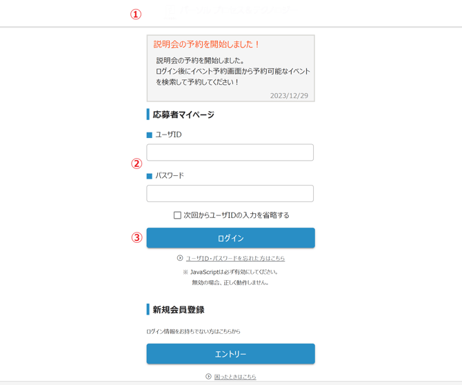 応募者マイページ ログイン方法