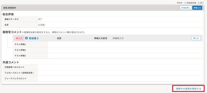 | 面接官による選考結果の入力 |