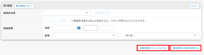 8.面接調整をキャンセルまたは変更したい場合は、面接調整画面下部の「面接調整をキャンセルする」または「面接調整の内容を変更する」ボタンから行います。