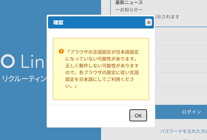 3.ログイン時、ブラウザが日本語設定でない場合警告を表示させます