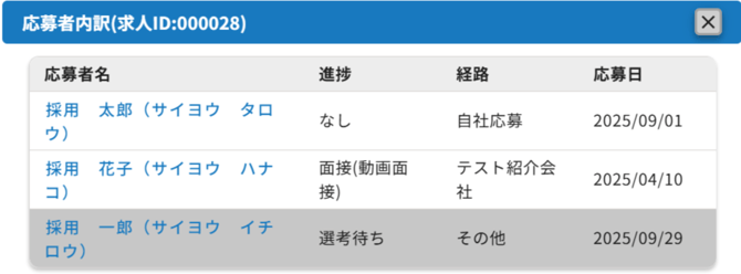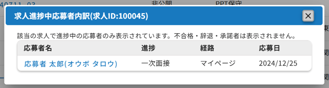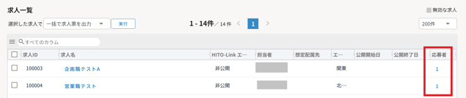 求人>求人一覧画面の右にある「応募者」に表示されている人数について