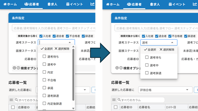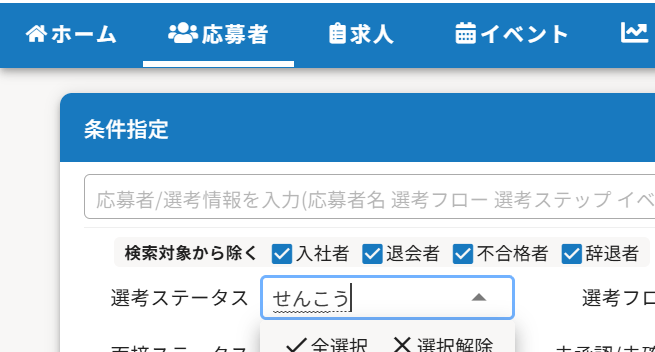 応募者一覧の検索時条件指定や、求人作成時に選択肢の検索が可能になります!