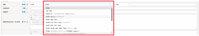 職種大分類・小分類ともにプルダウンで選択できる項目全体が表示されていませんでした。