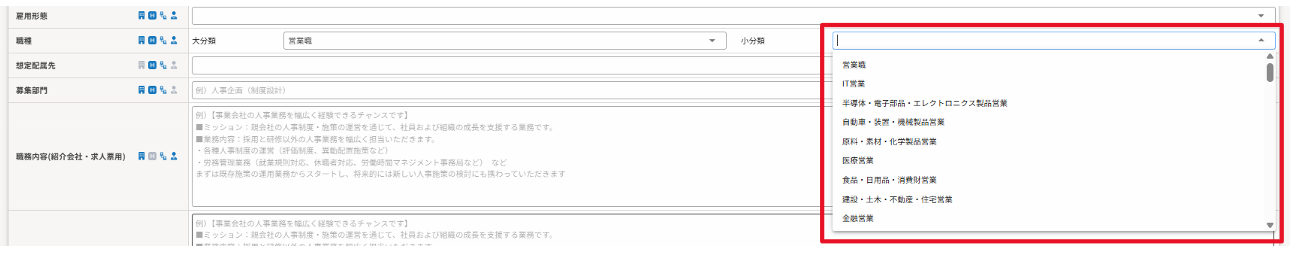 求人作成時の職種の選択肢の見やすさが改善され選択しやすくなります!