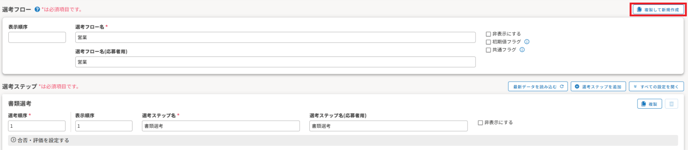 - 複製元で非表示になっている選考フローについて、複製先では登録されません。