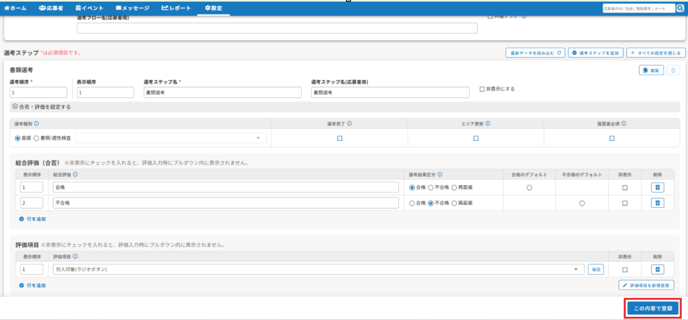 設定すると、応募者一覧で合否の一括登録ができるようになります。 |