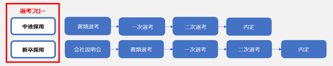 面談に種類がある場合や、会社説明会が選考フローごとにある場合等に分けることができます。