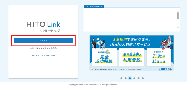 HITO-Linkリクルーティングへログインし、HITO-Linkエージェントに求人を掲載します。