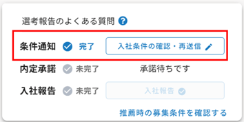 変更したい場合は、〔入社条件の確認・再送信〕から条件通知を再送信してください。