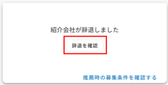 紹介会社がHITO-Link上で辞退にすると、以下の表示になります。