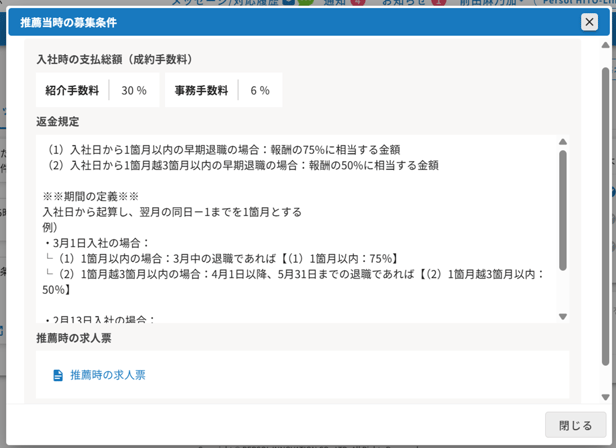 - 推薦時の求人票