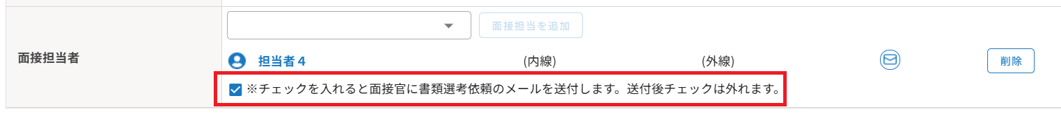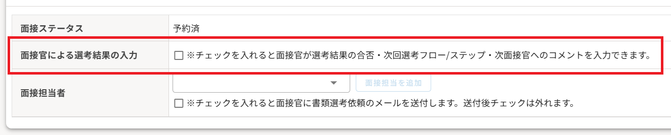 面接官による選考結果の入力にチェックを入れてください - 面接官に書類選考依頼のメールを送りたい場合