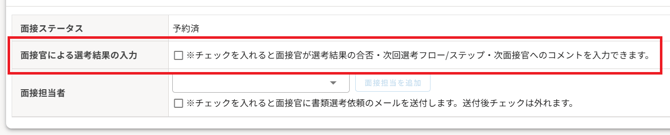 面接官が複数いて、それぞれ合否を登録したい場合は、面接官名の横の合否を入力してください。